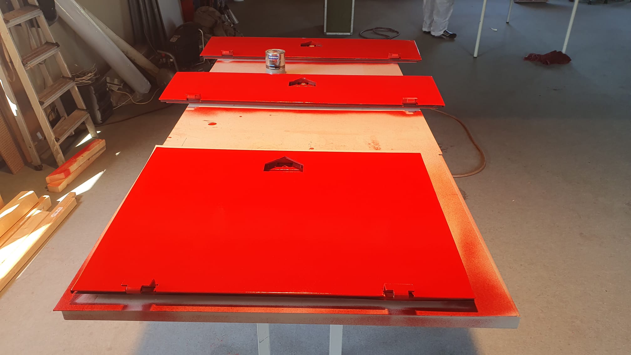 Vandaag zijn we uitgenodigd bij de sport en spel week in Landsmeer. (Brandweer wedstrijdploeg) Alvorens daar heen te kunnen moesten we eerst een linker kastdeur en twee gereedschap kleppen nog even in de verf zetten. Het lijkt wel of we dat altijd hebben als we schades aan het opknappen zijn. 😊 En ja, we hadden al toegezegd dat we zouden komen. Dus rapido aan het werk.